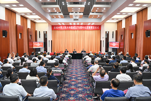 9月18日上午,住房和城乡建设部隆重举行“庆祝中华人民共和国成立70周年”纪念章颁发仪式,98名同志荣获纪念章。部党组成员、副部长倪虹为获得纪念章的代表颁发纪念章并讲话,部直属机关各单位负责同志和干部职工代表参加颁发仪式。