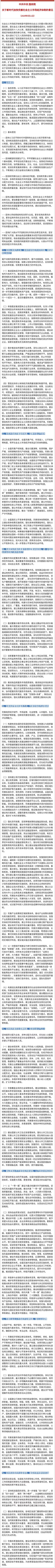 新华社北京5月18日电,《中共中央国务院关于新时代加快完善社会主义市场经济体制的意见》发布。文件提出,中国特色社会主义进入新时代,社会主要矛盾发生变化,经济已由高速增长阶段转向高质量发展阶段,与这些新形势新要求相比,我国市场体系还不健全、市场发育还不充分,政府和市场的关系没有完全理顺,还存在市场激励不足、要素流动不畅、资源配置效率不高、微观经济活力不强等问题,推动高质量发展仍存在不少体制机制障碍,必须进一步解放思想,坚定不移深化市场化改革,扩大高水平开放,不断在经济体制关键性基础性重大改革上突破创新。