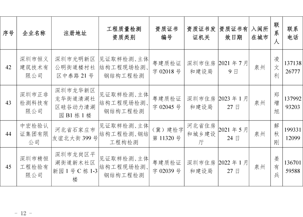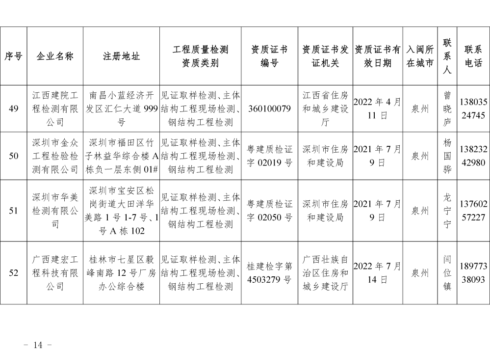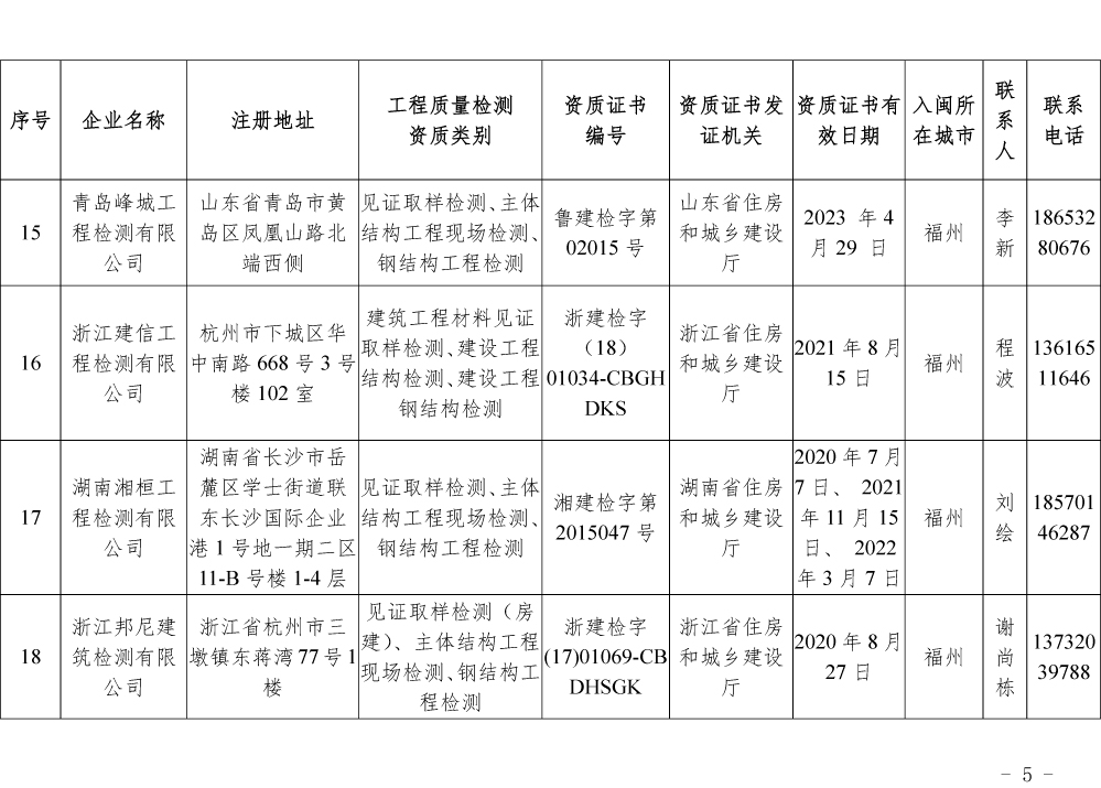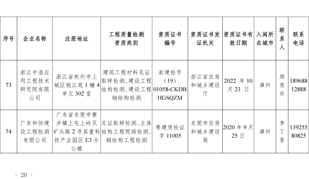 为更好的支持和服务我省房屋安全鉴定工作,截止5月底,共计74家省外建设工程质量检测机构已按照《建设工程质量检测管理办法》(住建部令第141号)有关规定,在我厅办理入闽承担检测业务备案手续,现将74家检测机构名单予以公布。