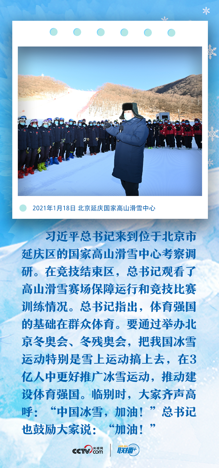 |联播+|1月18日,习近平总书记在北京考察冬奥会、冬残奥会筹办工作。总书记先后来到位于北京市海淀区的首都体育馆和位于北京市延庆区的国家高山滑雪中心、国家雪车雪橇中心考察调研,了解运动场馆建设和运动员参赛备战等情况,看望慰问运动员、教练员和延庆赛区运行保障团队、建设者代表。