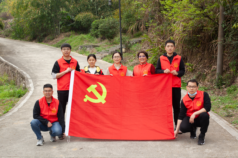 明媚春光里,党员同志们认真学习植树要领,挖坑、清石、放苗、培土、浇水……三人成组、五人成团,大家热情满满、干劲十足,一棵又一棵的樱花树苗在有条不紊的配合下迎风摇曳。