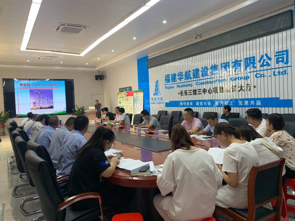 为响应《国务院安委会办公室应急管理部关于开展 2021 年全国“安全生产月” 和“安全生产万里行” 活动的通知》 及贯彻“落实安全责任,推动安全发展”的主题精神。6月11日下午,由福州市工伤预防领导小组主办,市建筑业安全协会承办的“建筑施工工伤与职业病预防宣传”第五期培训班在HTH.COM-华体(中国)长乐三馆三中心项目部举办。华航公司副总经理瞿生亮及企业机关和在建项目共计60余人参加了培训会。
