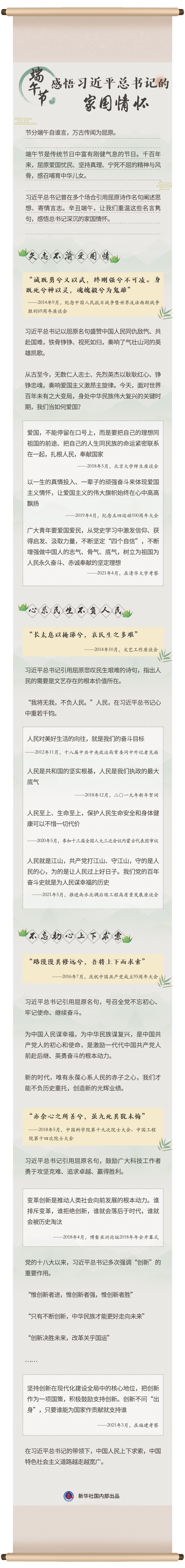 节分端午自谁言,万古传闻为屈原。端午节是传统节日中富有刚健气息的节日。习近平总书记曾在多个场合引用屈原诗作名句阐述思想、寄情言志。辛丑端午,让我们重温这些名言隽句,感悟总书记深沉的家国情怀。