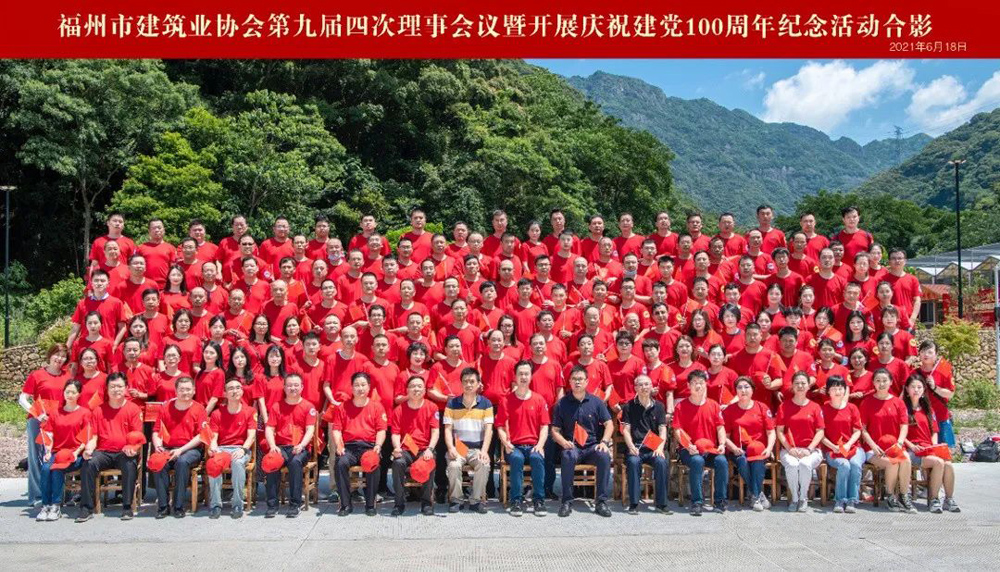 6月18日,为隆重纪念中国共产党百年华诞,回顾党的光辉历程,进一步激发基层党组织活力,强化党建引领,实现建筑行业高质量发展,由福州市建筑业协会党支部、福州市建筑业协会、福州市建筑行业工会联合会主办的福州市建筑业协会第九届四次理事会议暨庆祝中国共产党成立100周年纪念活动在福清市罗汉里爱国主义教育基地举办。协会理事、会员企业工会党群干部、协会党支部党员160人参加活动。施忠旗会长作市建协第九届三次理事会工作报告及2020年主要工作计划,秘书长王斌主持会议。大会对包含福建华航集团在内的39家企业进行表彰,颁发2020年度福州市建筑业先进企业奖牌。