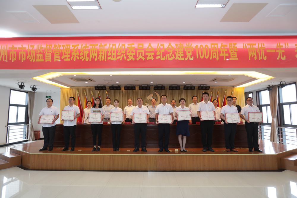 6月28日,福州市市场监督管理系统两新组织党委庆祝建党100周年暨“两优一先”表彰大会隆重召开。福建省市场监管局党组成员、总工程师、小微企业和个体经济组织党委书记张元榕,福州市委两新工委专职副书记陈有飞,福州市市场监管局党组成员、副局长、系统两新组织党委书记薛文等领导出席会议。