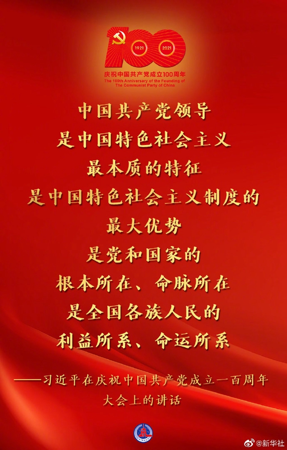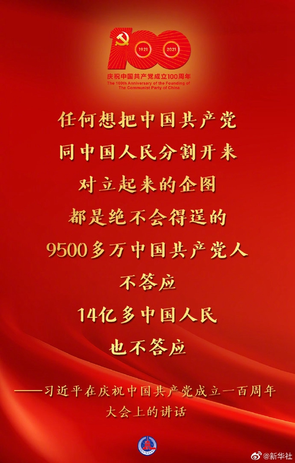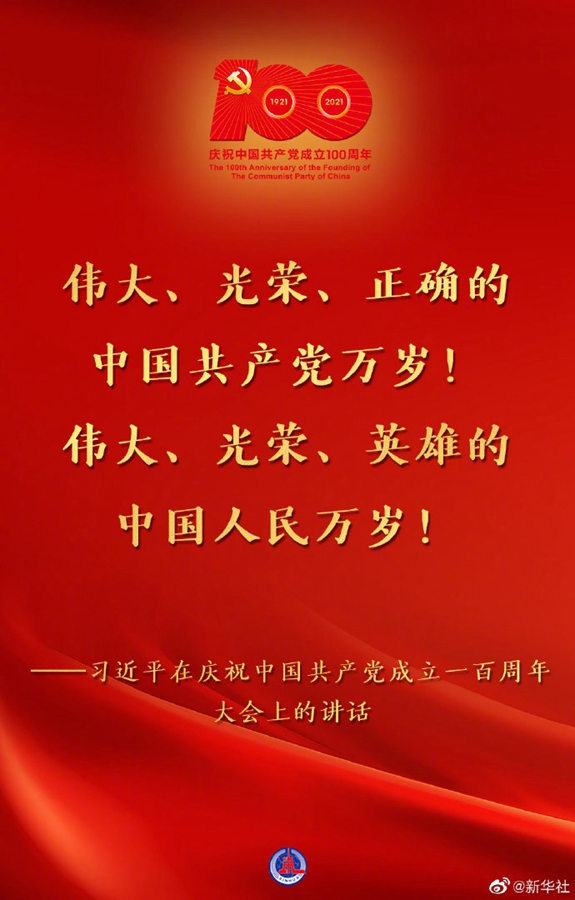 (现场实录)习近平:在庆祝中国共产党成立一百周年大会上的讲话