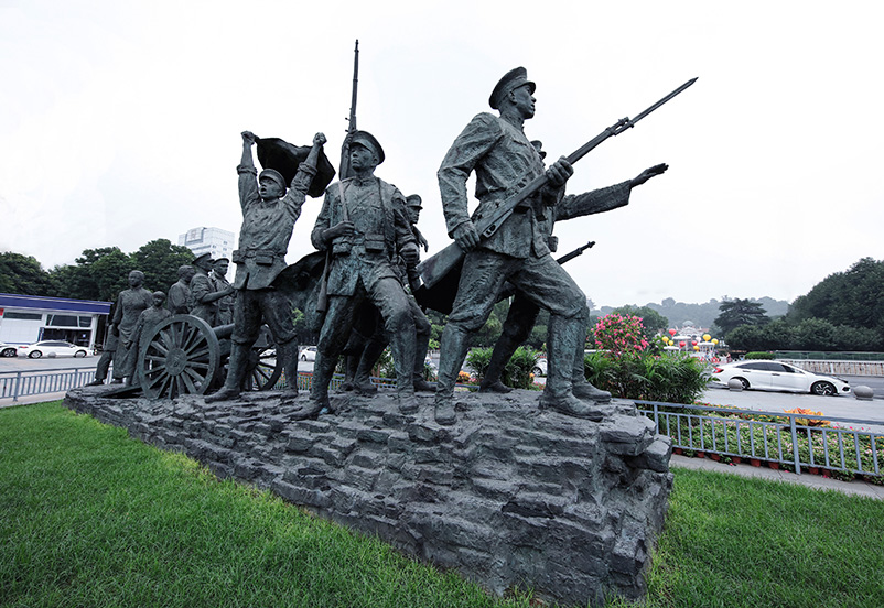 2021年7月4日,辛亥革命博物馆广场上的“走向共和”大型铜像。