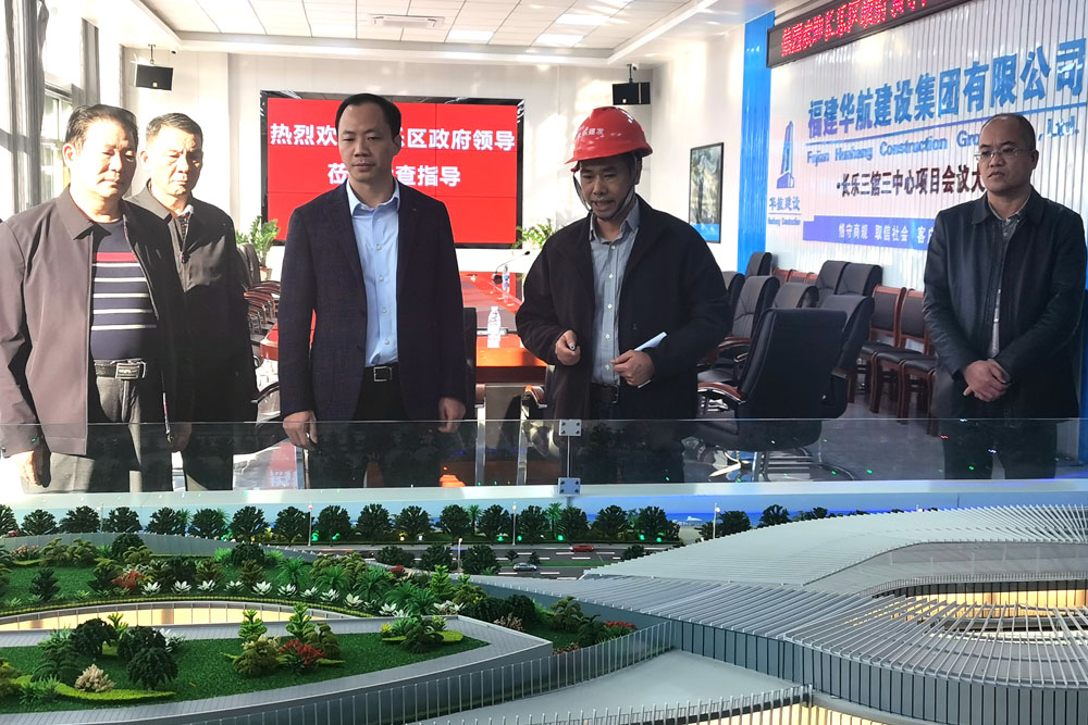 11月24日下午,长乐区政府廖海军代区长带队,李育民、林春营等区政府领导一行莅临由福建华航建设集团承建的长乐三馆三中心项目开展调研。长乐区住建局邱群局长、区建发集团李如杰董事长和林祥春总经理、福建华航建设集团陈益魁总经理和项目管理团队陪同调研并作现场讲解。