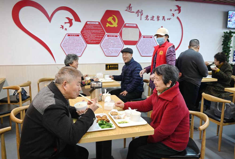 2022年2月18日,福州市鼓楼区洪山镇锦江社区的老人在锦江久号长者食堂吃午餐。新华社记者 林善传 摄