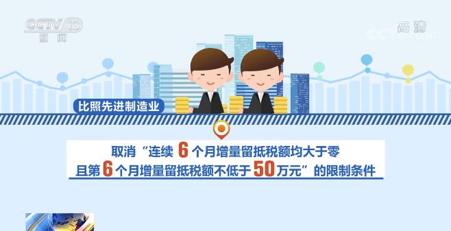 在扩大范围、提高比例以及加快频次上,与前期政策相比,实施力度均有所加大。对小微企业和制造业等六个行业,不仅允许其退还增量留抵税额,而且允许其退还存量留抵税额。将小微企业和制造业等六个行业增量留抵税额退还比例由60%提高到100%,和先进制造业保持一致。另外,对所有小微企业和制造业等六个行业纳税人均按月退还增量留抵税额,比照先进制造业,取消“连续6个月增量留抵税额均大于零,且第6个月增量留抵税额不低于50万元”的限制条件。