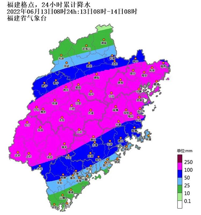 13日8时至14日8时累计降水。福建省气象台供图