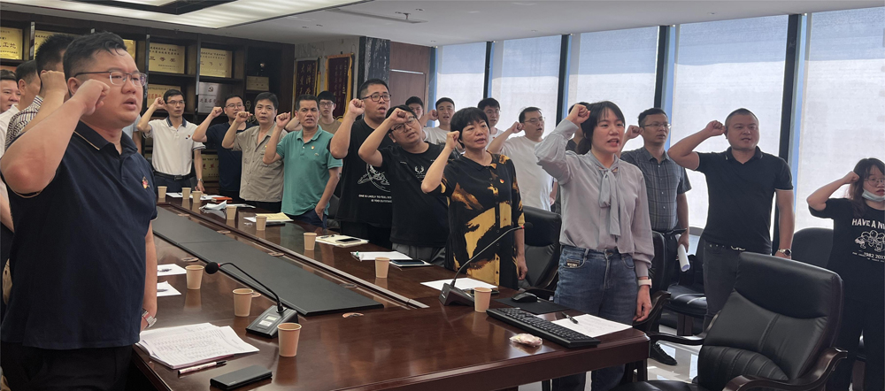 主题党日活动在全体党员激昂高唱“国际歌”中拉开了帷幕。由张华官书记领誓,全体党员重温了入党誓词,铿锵有力的誓词让在场每个人都深受心灵的震撼和洗礼,汇聚起矢志不渝跟党走的磅礴力量。