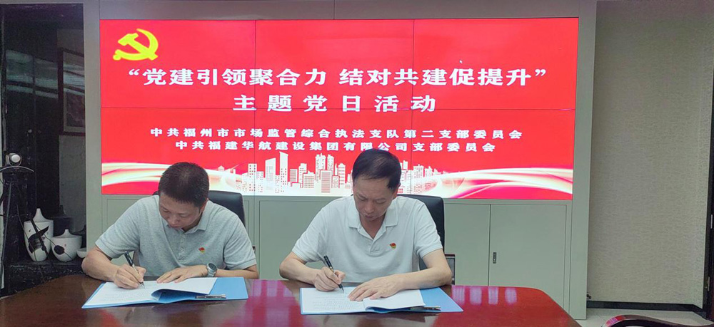 随后,HTH.COM-华体(中国)党支部书记张华官与福州市市场监管综合执法支队第二支部书记李芳辉共同签署《党组织结对共建协议书》。党员们纷纷表示,党的二十大报告对第二个百年奋斗目标作出了具体的安排,任务已经明确,方向指引道路。两个支部将在接下来的共建活动中,紧密结合工作实际,以强烈的责任担当,推动党的第二个百年奋斗目标早日实现!